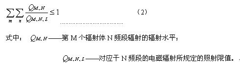 4.4.3 在對(duì)輻射水平進(jìn)行評(píng)價(jià)時(shí),應(yīng)考慮到某一輻射體可能存在的幾種輻射頻率的貢獻(xiàn)以及多個(gè)輻射作的貢獻(xiàn),即應(yīng)滿足式(2):
