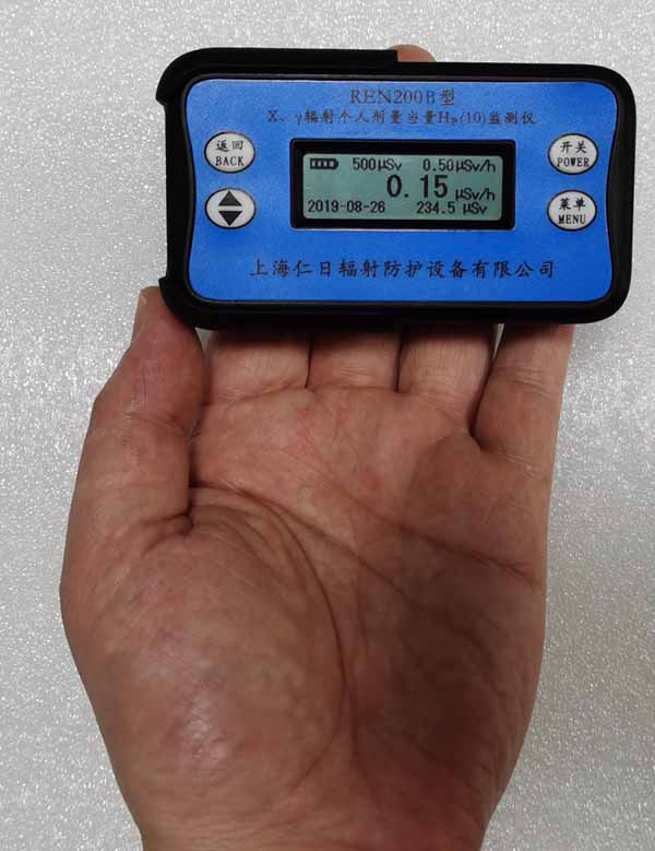 REN200B型X、γ輻射個人劑量當量HP(10)監(jiān)測儀(簡稱:個人劑量報警儀)內(nèi)置高量程蓋格計數(shù)管為探測器,主要用來監(jiān)測各種放射性工作場所的X、γ以及硬β射線的輻射,具有較寬的測量范圍。能顯示工作場所的劑量當量率和累積劑量,更換電池時,日期及累積數(shù)據(jù)能永久保存。可選配RenRiPersonal個人劑量管理軟件,該軟件可存儲多個人的歷史數(shù)據(jù),能記錄日累積、月累積、年累積、輻照時長、計算平均劑量率、扣除或不扣除本底輻射,且以文字和圖譜的方式展現(xiàn)數(shù)據(jù)。廣泛應用于核電站、加速器、鋼鐵、化工、同位素應用、工業(yè)X、γ無損探傷、放射醫(yī)療、鈷源治療、γ輻照、放射性實驗室、核設施周圍環(huán)境監(jiān)測等領域中的工作人員進行個人安全防護監(jiān)測及放射性提示。